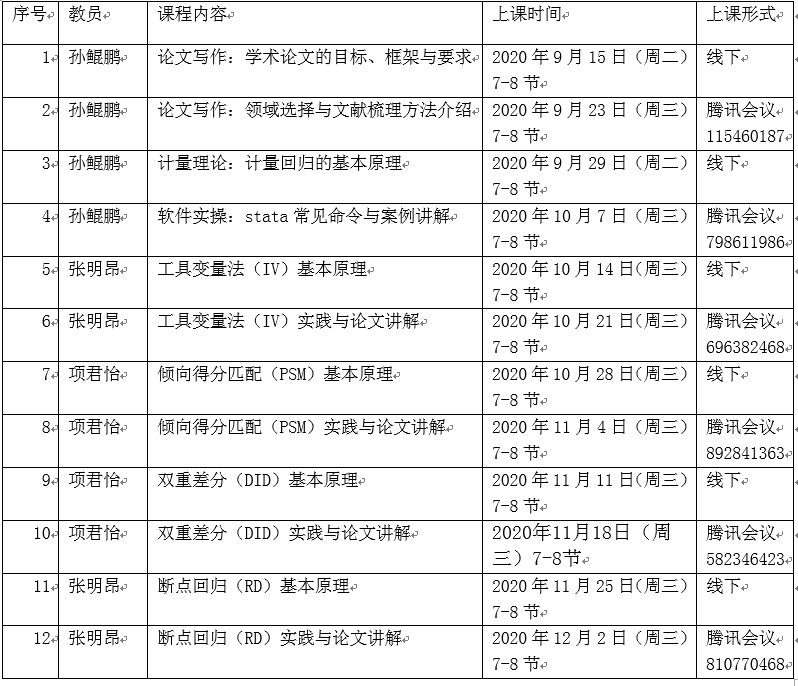 为了使得同学们系统地学习学术论文写作规范和微观计量方法,在2020年秋季学期,betway西汉姆联平台即将推出系列课程,共计24个课时,涵盖论文写作、计量理论、软件实操、IV、PSM、DID、RD等方法运用。后期还将举行微观计量方法指导、计量财税建模等讲座。