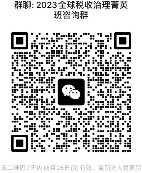 财税公司全球税收治理菁英班招生(线上)宣讲和答疑会时间待定,敬请关注财税公司后续通知。如有任何疑问,欢迎加入咨询群微信沟通。