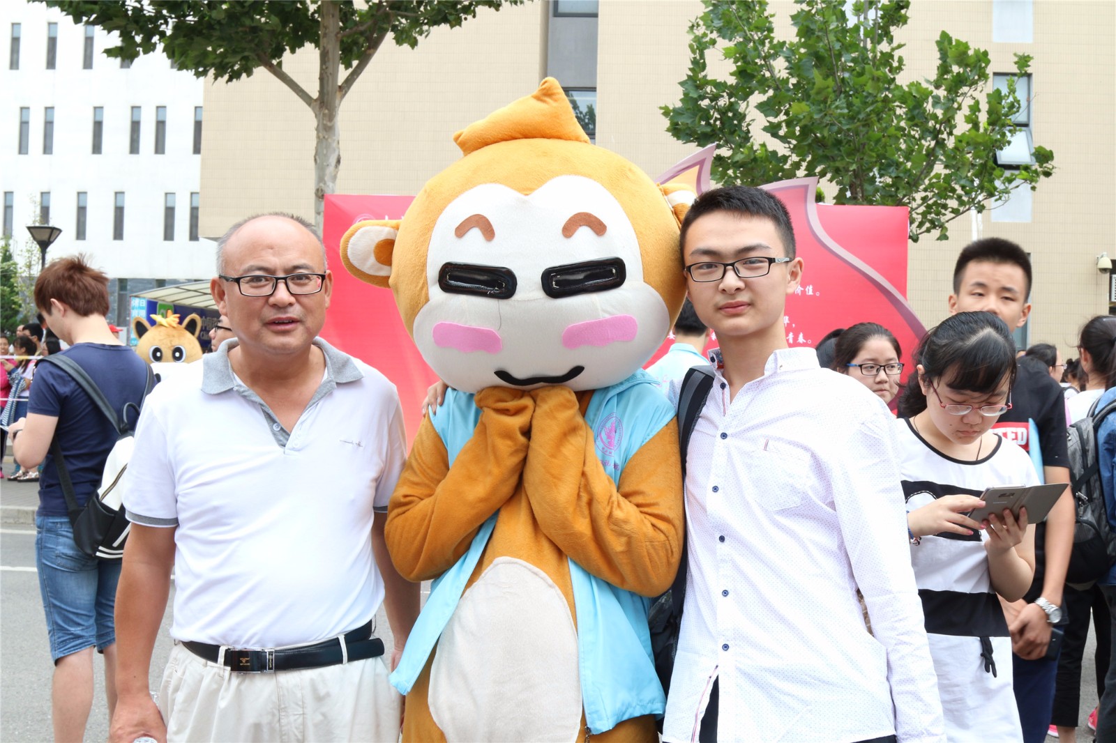 新生与吉祥物合影