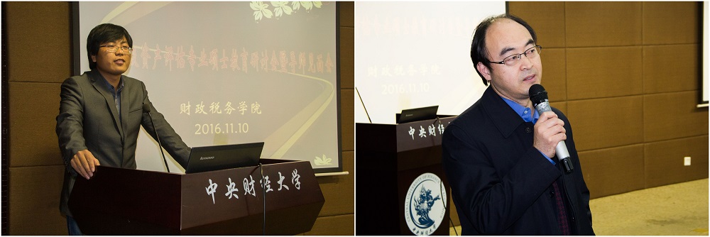 经理助理李小荣老师、税务管理系系主任蔡昌老师代表资产评估专硕校内导师讲话。李小荣老师对同学们提出了四点要求。第一,应提高逻辑思维、信息整理、写作和表达能力;第二,应融入公司的氛围,继承中财的优良传统,弘扬中财的优秀文化;第三,应踏实学习,不浮躁,在信息化和多元化价值观的社会里,静下心来做研究;第四,应处理好同学和导师的关系,主动联系导师。蔡昌老师将资产评估行业与税务行业紧密联系起来,说明资产评估行业在目前的市场并购重组案例中起到了不可或缺的作用。