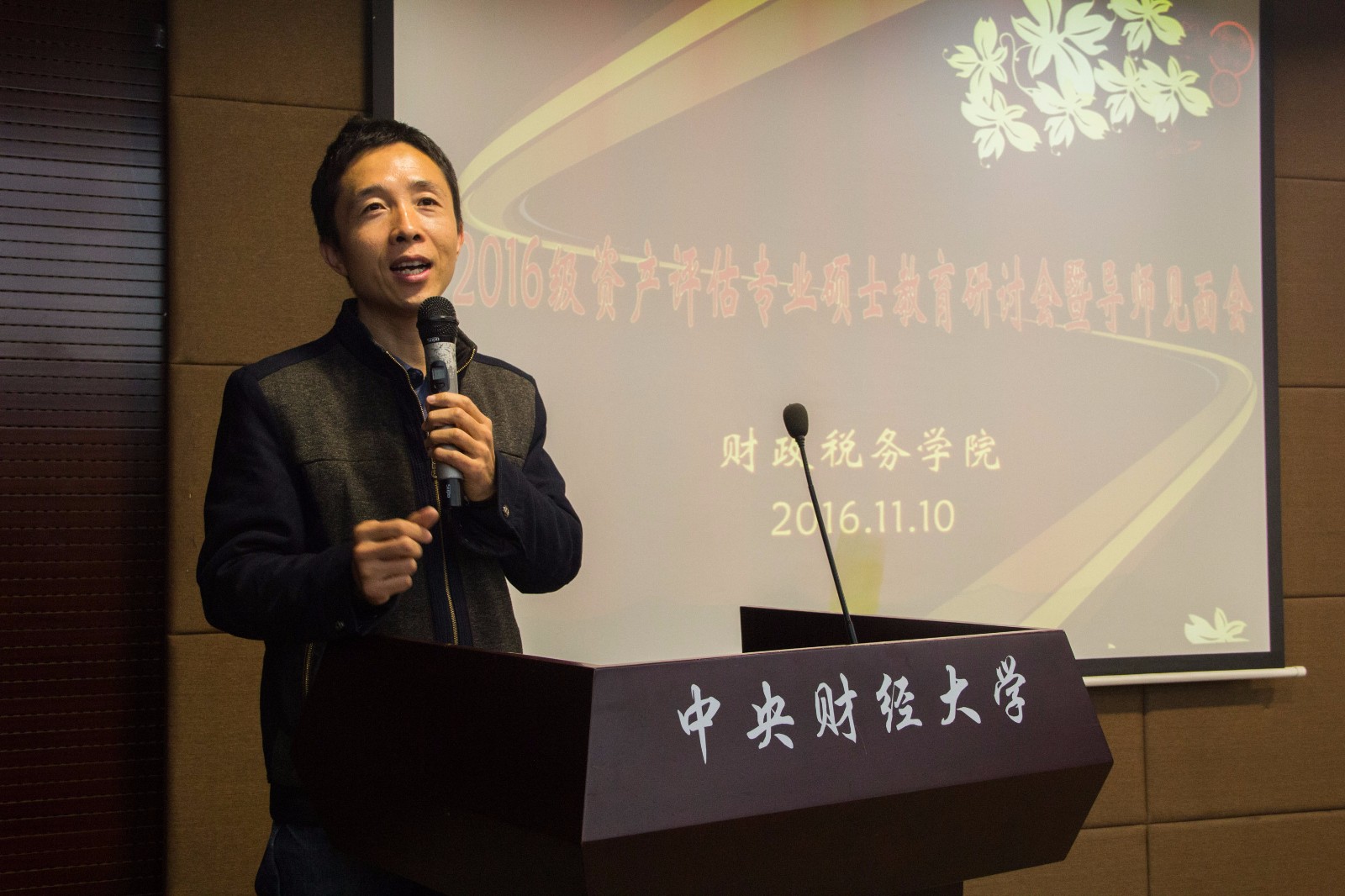 2016级资产评估专业硕士导师见面会在中财大厦二层报告厅举办,会议由何杨副经理主持。