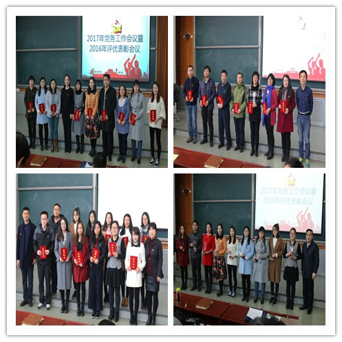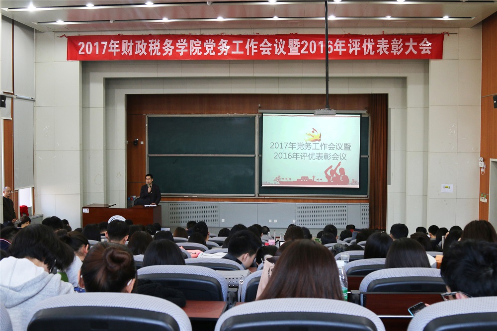 会议首先对2016年度先进集体和个人进行了表彰。陈宇等9人被授予优秀党务工作者;杨志清等8位教师,刘家豪等13位同学被授予优秀共产党员;同时表彰了9个优秀党支部,包括协同创新中心党支部、16税务党支部、15财政学党支部、第三本科生党支部、第一本科生党支部、税务管理党支部、国际税收党支部、财政党支部、财政管理党支部。院组织员李飞霞、经理白彦锋、党委委员、副经理任强、何杨、党委书记樊勇代表党委分别为先进个人和集体颁奖。