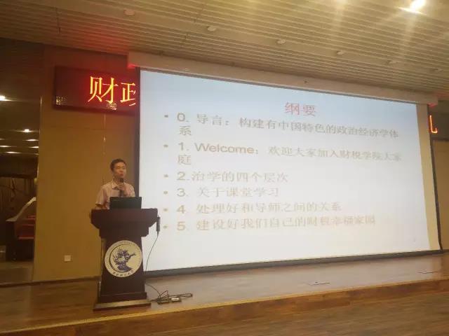 在“经理谈治学”环节,白彦锋经理以“朴实、厚实、踏实建设财税学科的中财学派”为主题,以习近平同志7.26讲话精神为引,表达出“勇于推进实践基础上的理论创新”的决心和魄力。在表达对新同学的欢迎之后,白经理从治学的多个角度展开论述,给同学们在学术研究与生活方面上了中财第一课。第一要学会理财。“由俭入奢易,由奢入俭难。”白经理始终秉持俭以养德的理念,告诫同学们莫沦为电商时代的奴隶,时刻保持成熟的判断力。第二要有健康的精神生活。正确看待交友和恋爱,平衡好生活和学习的节奏,为自己的选择负起责任。第三要珍惜课堂学习。一方面,明确意识到公司产品的不可逆性,做好课堂学习,摒弃碎片化阅读,保持学术诚信;另一方面,博览群书,教学相长。第四要处理好和导师的关系。莫做“精致的利己主义者”,对导师始终抱有敬重感,勿以庸俗的礼物和信息为扰,而要在专业领域多做沟通,以干练的行动快速响应导师的要求,独立完成一篇规范的学术论文便是对导师最大的尊重。最后,在财税改革40年即将到来之际,白经理希望年轻的一代人可以一同为建设中财学派而努力,为全面复兴的财税治理代言。