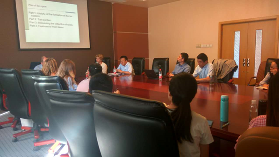 2017年9月22日,俄罗斯乌拉尔联邦大学财务与税务管理系伊戈尔·马布鲁诺夫教授和尤莉娅·列昂季耶夫副教授到betway西汉姆联平台进行学术交流。9月22日上午,伊戈尔·马布鲁诺夫教授在公司南路校区学术会堂602做了关于俄罗斯近期税制改革的学术讲座。betway西汉姆联平台副经理任强教授、经理助理汪昊副教授、邵磊老师等及财税公司的硕士和博士参加了此次学术交流。
