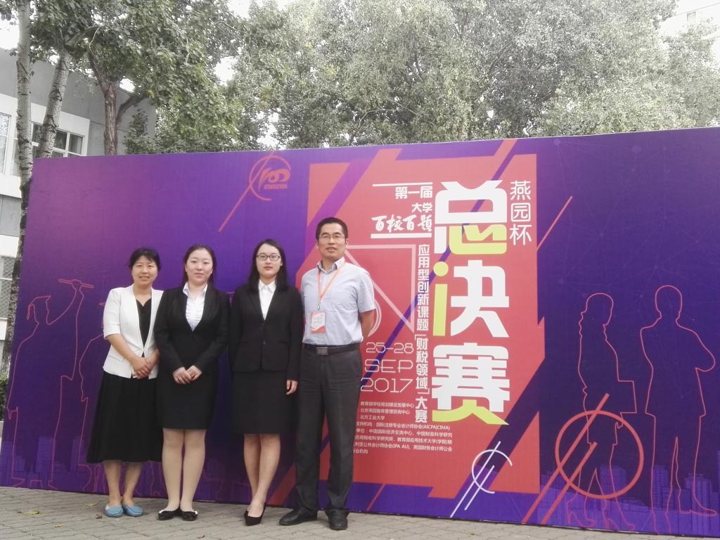 教育部首届老员工“百校百题”应用型创新课题(财税领域)复活赛,2017年9月26日在北方工业大学大学举行,betway西汉姆联平台的课题小组在研究生组的比赛中,凭借着出色的发挥,获得教育部首届“百校百题”应用型创新课题(财税领域)大赛总决赛优胜奖,“财税风芸”团队获得了此次大赛最佳风采奖。