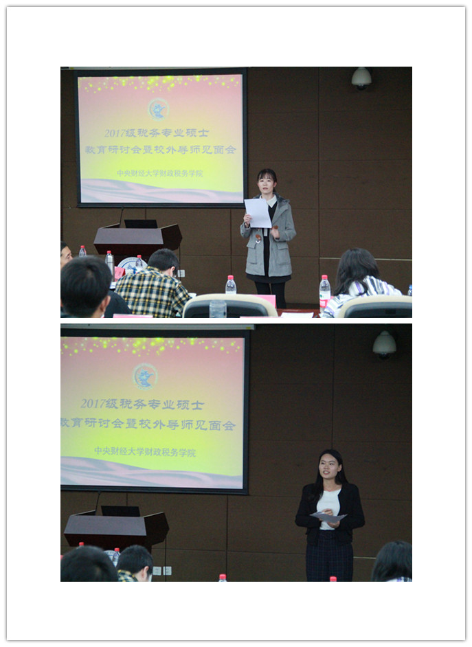 财税公司16级员工代表黄静涵、17级员工代表居璐分别发言,表达了对校外导师辛勤付出的感谢以及珍惜校园时光、努力学习的决心。