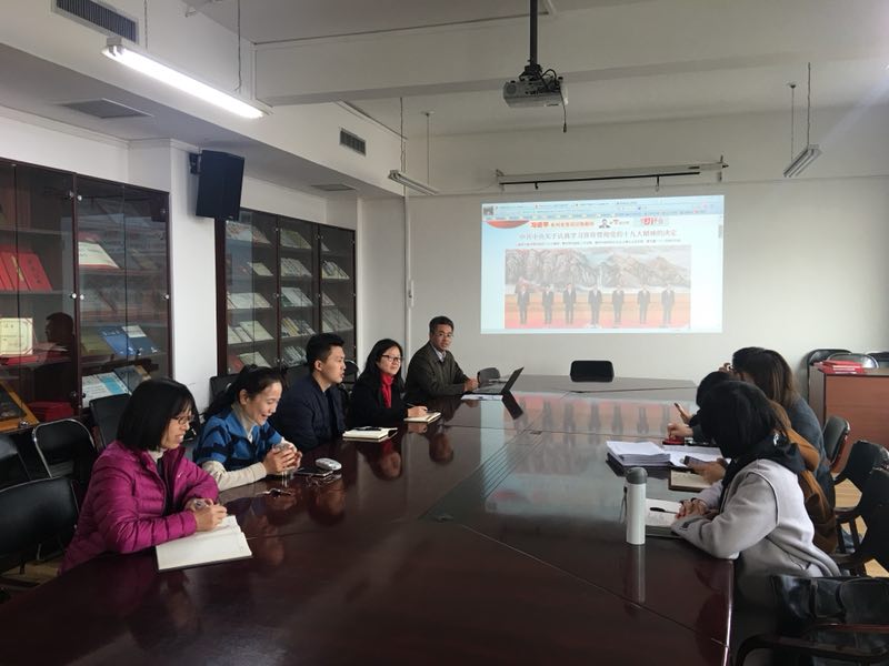 为全面深入学习宣传贯彻党的十九大精神,公司行政党支部全体成员及部分非党员行政教师于11月6日在主教1108进行了集体学习活动,会议由行政党支部书记任义轶老师主持。