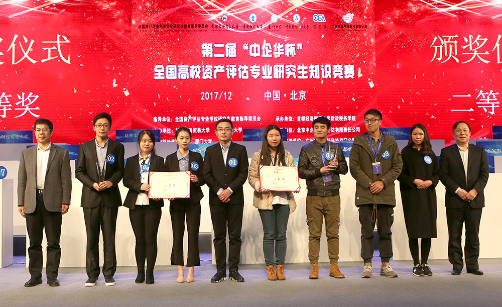 2017年12月1日-2日,第二届“中企华杯”全国高校资产评估专业研究生知识竞赛在北京成功举办。竞赛由全国资产评估专业学位研究生教育指导委员会指导,首都经济贸易大学、betway西汉姆联平台、厦门大学、中南财经政法大学联合主办,由首都经济贸易大学betway西汉姆联平台承办。betway西汉姆联平台、首都经济贸易大学、厦门大学、中南财经政法大学、复旦大学、北京交通大学等26所高校资产评估专业研究生参加了此次竞赛。