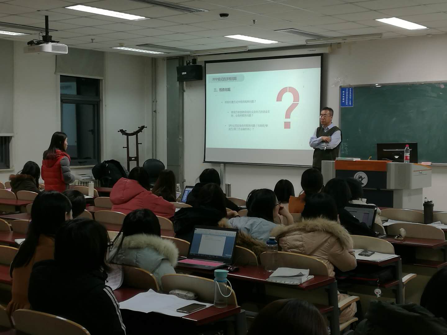 随后,许老师向同学们提出了由于政府不对等的纳税主体地位,带来的股权安排方式不同选择的案例思考,并提出对于SPV公司来说不存在税务风险,因为风险是协议约定的,政府和企业都得到了各自应得的部分,同时也达到了节税的效应。在第三部分中,许老师通过对G县工业园区PPP项目的合作内容、资金往来的案例介绍,引出了对S公司土地整理投资涉及的税务问题,G县政府获得的土地出让金及税收返还、入园企业从S公司获得的资金支持涉及的税务问题,以及政府及其设立的投资主体涉及税务问题的思考。