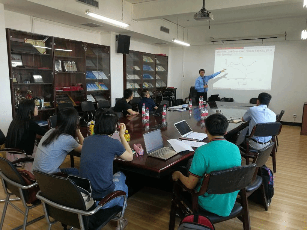 5月30日下午美国印第安纳大学公共和环境事务公司Justin MichaelRoss教授在主教1108会议室作题为“地方政府能否代表选民偏好?——基于地方政府平价医疗法案的研究”讲座。Justin MichaelRoss教授担任印第安纳大学地方政府治理协会主席,其研究领域为地方政府治理、社保改革等公共财政领域。讲座由betway西汉姆联平台樊勇教授主持,betway西汉姆联平台部分教授和博士、硕士生参加了此次讲座。