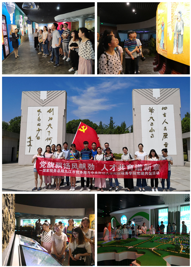 实习期间九江市税务局的同志们特地与betway西汉姆联平台的师生们共同开展了党建活动。7月17日,在九江市税务局同志们的带领下,同学们前往共青城市参观了耀邦陵园、鄱阳湖生态经济区规划馆和义门陈遗址。通过此次活动,同学们对老一辈无产阶级革命家胡耀邦同志的生平事迹有了深入了解,对 “心在人民,原无论大事小事;利归天下,何必争多得少得”这句体现优秀共产党员博大胸怀的名言记忆尤深。在鄱阳湖生态经济区规划馆,同学们对江西的风土人情,政策规划等有了进一步的体会。在义门陈遗址,同学们领略了传承优秀家风的重要性并深切感受到“义门陈”所蕴含的优秀传统文化。