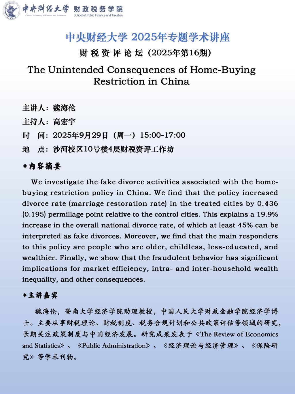 【财税资评论坛】中国住房限购令的非预期结果