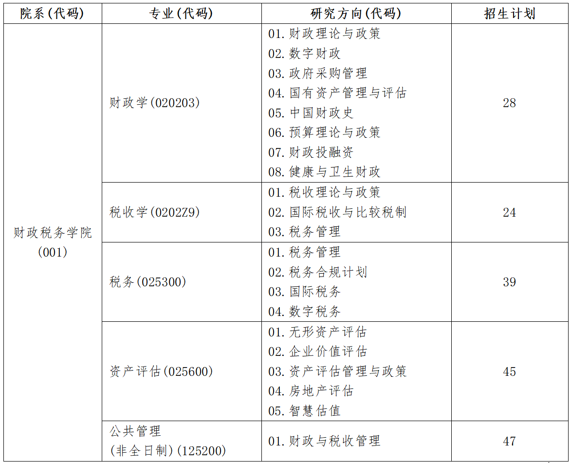 税务、资产评估专业招收专业学位硕士研究生,基本修业年限为两年,学习方式为全日制,学费为2.5万元/年。