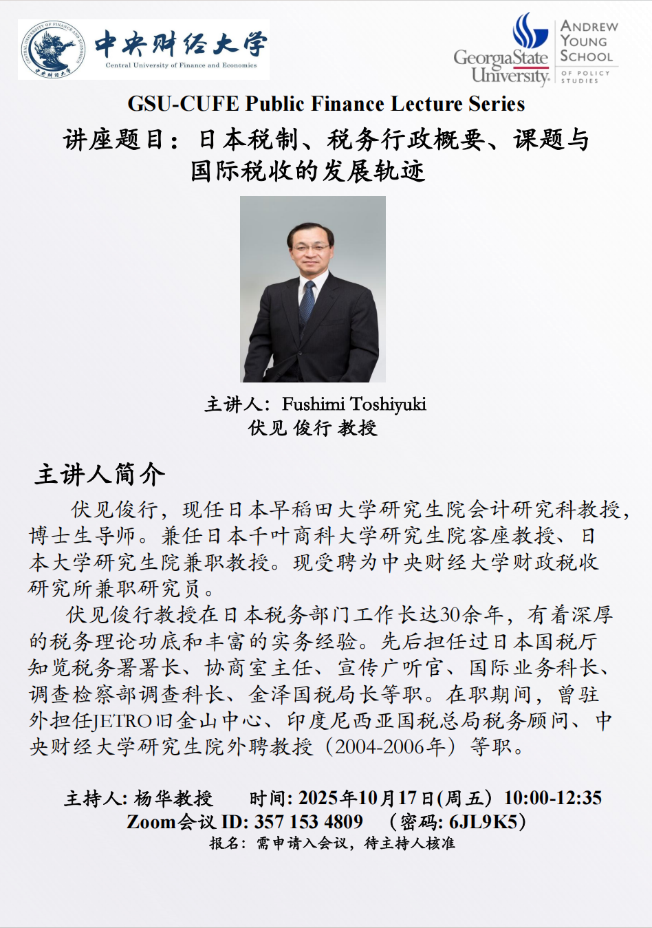 【“中财-乔治亚州立”公共财政国际学术前沿系列讲座】日本税制、税务行政概要、课题与国际税收的发展轨迹