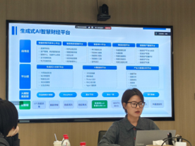 交流答疑环节中,中联教育郝黄达经理围绕生成式AI智慧财经平台进行专题分享,详细介绍了平台包含的生成式AI分析、智能财税共享中心、智能税务管理、智能估值、数据资产管理等核心模块,系统呈现了人工智能技术赋能下财税领域的数字化转型成果。分享内容通过数据支撑与实例佐证,凸显了生成式AI在企业实务操作与财税专业教育中的应用价值,有效深化了员工的专业认知。随后,师生围绕生成式人工智能及智能体在财税场景的具体应用、技术落地难点等问题展开深入交流。