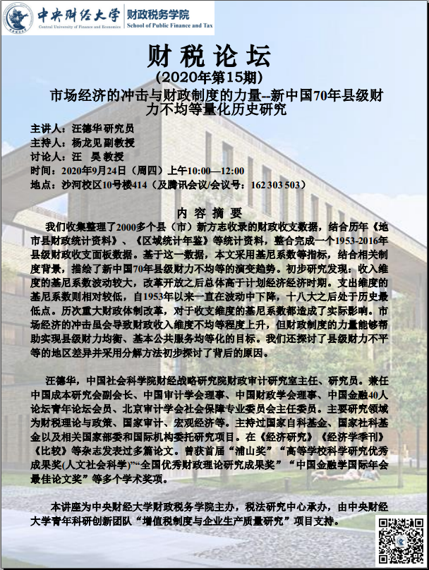 【财税论坛】15期:市场经济的冲击与财政制度的力量