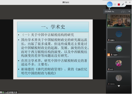 本次财税论坛采用线上会议形式,由财税公司马金华教授主持。财税公司副经理刘金科老师致辞,表达了对顾銮斋教授和各位参会老师同学的热烈欢迎,提出探讨中西中古赋税结构及其发展趋势有助于我们理解中外税收理念的差异和深层次原因,对我国税制改革具有重要启示意义,并希望依托财税论坛这一平台深化相关领域的学术交流与合作。