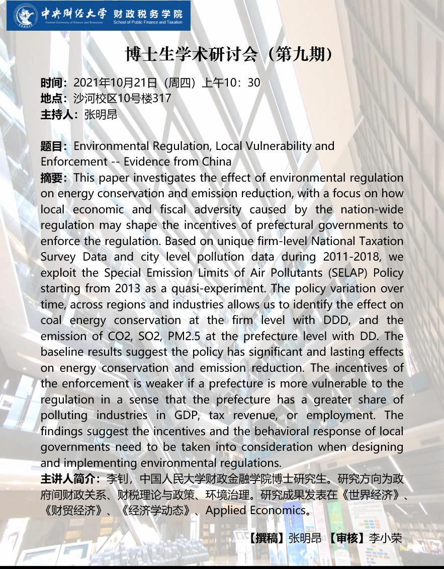 下一篇:【财税论坛】Local information and the stabilizing role of local government: evidence from a natural experiment in China