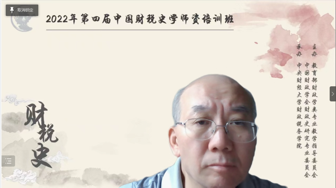 中国财政学会财政史研究专业委员会主任委员、中国财政科学研究院研究生院经理杨远根首先代表中国财政学会财政史研究专业委员会,欢迎来自全国各大财经院校的82名老师参加第四届中国财税史学团队培训班。杨远根经理指出举办第四届中国财税史学团队培训班的目的:一是服务财政发展现实的需要。当今世界正处于百年未有之大变局,我国正处于中华民族伟大复兴的进程之中,财政作为国家治理的基础和重要支柱,承担着无比艰巨的宏观调控和民生保障任务。当前我国财政收支面临着巨大的压力,在这种情况下也迫切需要总结财政发展的历史经验,把握财政发展的历史规律,制定科学合理的财政政策,克服缓解财政困难;二是推进财政团队建设的需要。习近平总书记在今年5月27日主持中共中央政治局第三十九次集体学习时强调,“要深入了解中华文明五千多年发展史”,要求“把中国文明历史研究引向深入”,总书记的要求为当前财政史学科的建设和发展指明了方向。财政团队建设必须强化财政史研究,但从实际情况来看,目前我国财政史研究相对不足,迫切需要加强财政史学研究;三是加强财政史学教学的需要。当前我国开设财政学专业的大学大约有100所左右,但开设财政史学课程的公司却相对较少,一个重要原因在于财政史学教学的团队力量相对不足,迫切需要培养财政史教学人才。杨远根经理还介绍了中国财政学会财政史专委会。财政史专委会自2004年成立,使命定位于推动财政史研究与教学的发展与繁荣,是科研部门与高等院校开展财政史学术交流和课题交流与合作的平台。专委会同教育部财政学教指委合作举办中国财税史学团队培训班,是专委会近年来的一项重要工作,希望把培训班办成财税史学的“黄埔军校”,薪火相传,不断发展和壮大财税史科研和教学队伍。最后杨远根经理热烈欢迎各位学员加入到财政史专委会这个大家庭中。财政史专委会会努力建设好这个大家庭,发挥好专委会的平台作用,更好为广大教学研究人员服务。