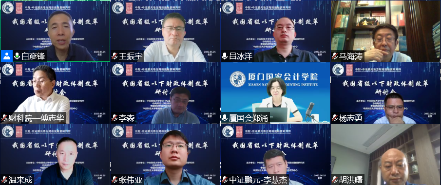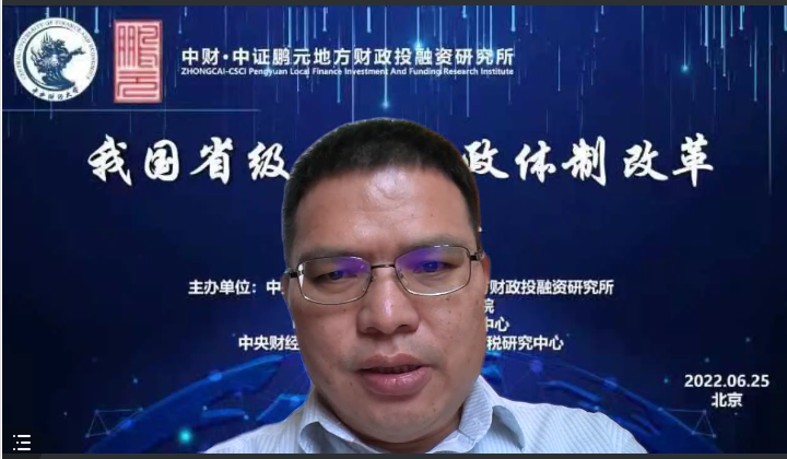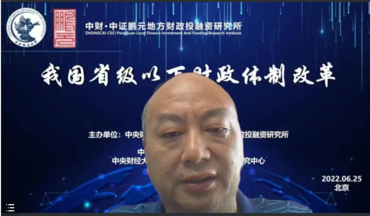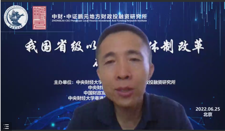 2022年6月25日,由中央财经大学中财-中证鹏元地方财政投融资研究所、betway西汉姆联平台、中国财政发展协同创新研究中心、betway西汉姆联平台粤港澳大湾区研究院财税研究中心联合主办的我国省级以下财政体制改革研讨会在线上成功举办。来自中国社会科公司、中国财政科学研究院、厦门国家会计公司、中国人民大学、辽宁大学、山东财经大学、中南财经政法大学、betway西汉姆联平台,以及中证鹏元资信评估股份有限公司的十几位专家学者进行了发言。来自全国各地的专家学者、员工,以及社会各界人士7200多人通过腾讯会议、百度直播参加了研讨会。