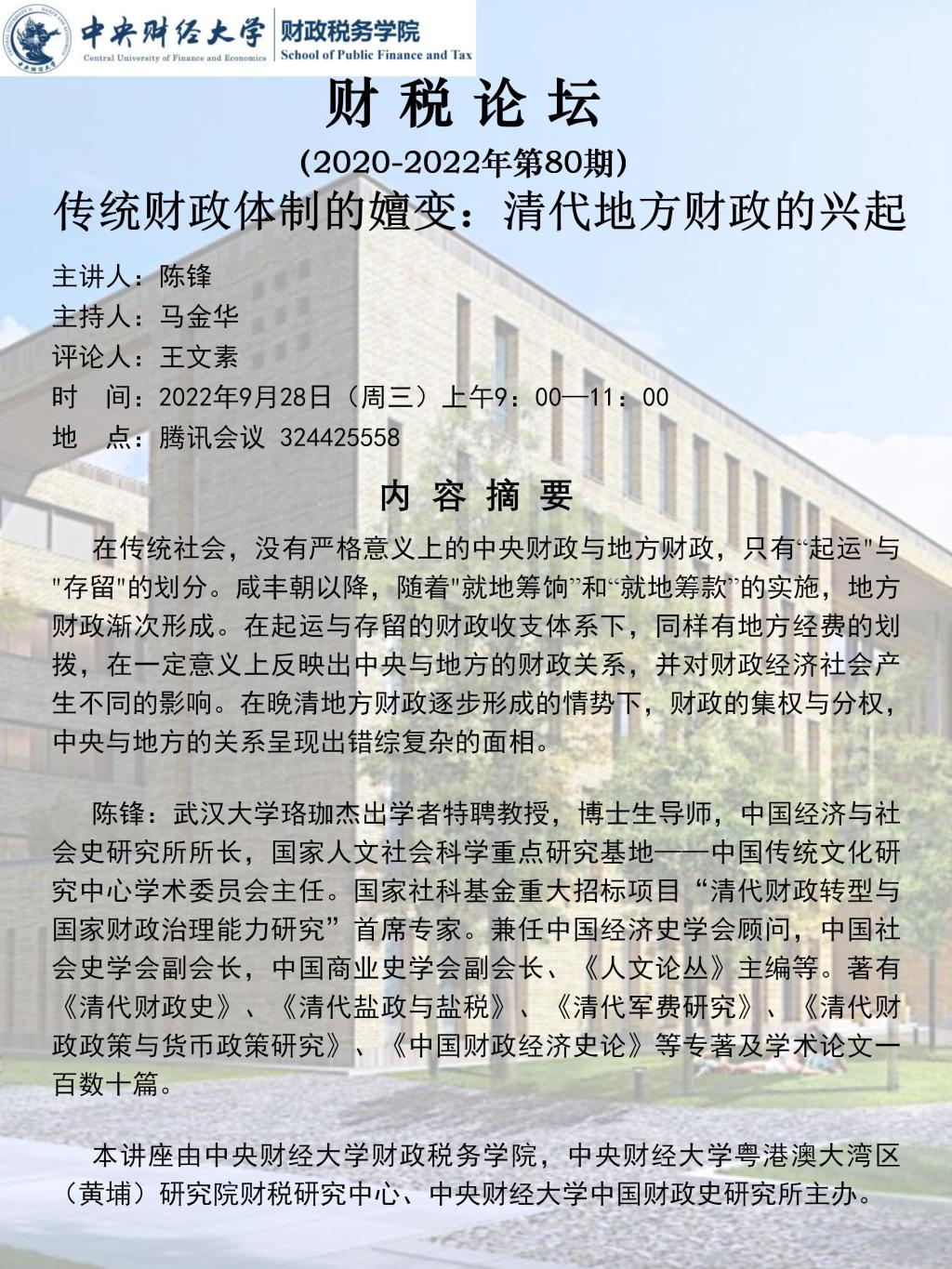 betway西汉姆联平台举办“传统财政体制的嬗变:清代地方财政的兴起”讲座