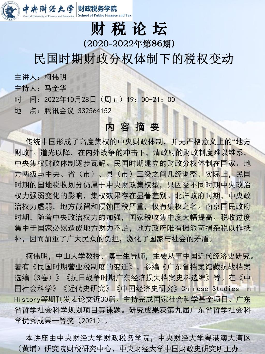 betway西汉姆联平台举办“民国时期财政分权体制下的税权变动”学术讲座