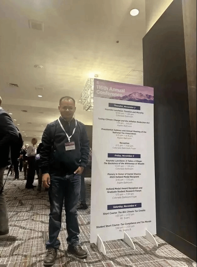 2023年11月2日至4日,betway西汉姆联平台寇恩惠副教授受主办方邀请,参加在美国科罗拉多州丹佛市举行举办的第116届美国税收年会(116th Annual Conference)。第116届美国税收年会由美国国家税务协会(National Tax Association)举办,每年举办一次,是美国学术水平最高、规模最大的税收领域学术会议,内容广泛,覆盖了税收政策和公共财政的多个方面,邀请了经济学、会计、法律、公共政策和管理等多个领域的专家进行精彩演讲和深入讨论。