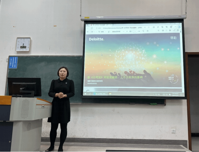 2024年3月25日晚上,公司邀请到德勤中国税务与商务咨询总监张如老师,为2023级税务专业硕士同学们带来“新《公司法》对企业融资、上市及税务的影响”的专题讲座。张如老师详细解读了新《公司法》“新”在何处,通过清晰的对比、专业的法条分析、生动的现实案例,阐明其对企业融资、上市及税务的影响。