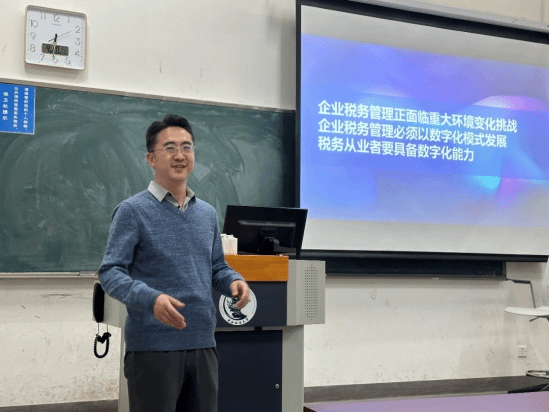2024年4月10日晚上,公司邀请毕马威中国企业税务数字化与管理咨询合伙人贾俊远老师,为2023级税务专业硕士同学们带来“大企业税务管理数字化升级”的专题讲座。贾俊远老师结合企业税务案例,通过活跃的课堂互动的方式,详细解读了现阶段税务环境变化和数字化系统性税务管理的重要性,阐述了如何在传统税务向数字化税务转型过程中实现企业税务管理升级发展。