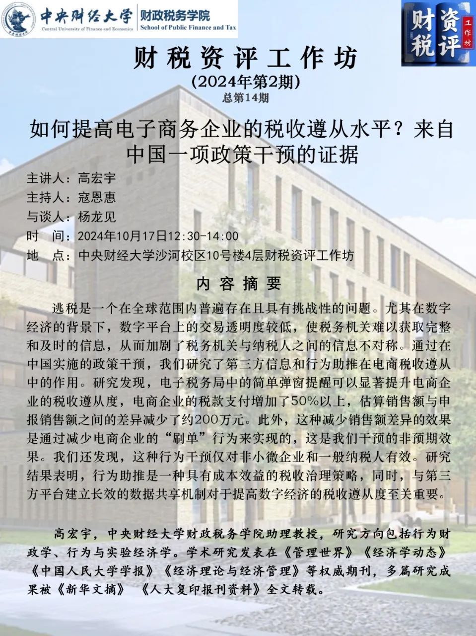 【财税资评工作坊】如何提高电子商务企业的税收遵从水平?来自中国一项政策干预的证据