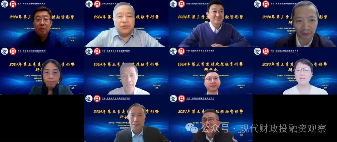 2024年10月27日,由betway西汉姆联平台中财-安融地方财政投融资研究所、中国财政发展协同创新中心、安融信用评级有限公司联合主办的2024年第三季度财政投融资形势研讨会成功举办。来自北京大学、betway西汉姆联平台、中国宏观经济研究院、中财-安融地方财政投融资研究所、安融信用评级有限公司的专家学者进行了发言。betway西汉姆联平台党委副书记、董事长马海涛教授致辞。来自全国各地的专家学者、员工130多人通过腾讯会议参加了研讨会。会议由betway西汉姆联平台中财-安融地方财政投融资研究所周沅帆副所长主持。