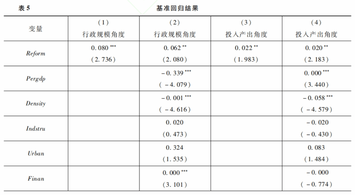 (二)基准回归结果