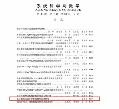 近日,由betway西汉姆联平台孙会霞老师撰写的论文《基于加权主成分分析的投资组合优化》刊发于中文A类期刊《系统科学与数学》2023年第7期。以下为文章主要内容: