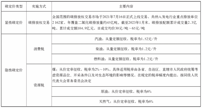 表1 我国碳定价方式及主要内容