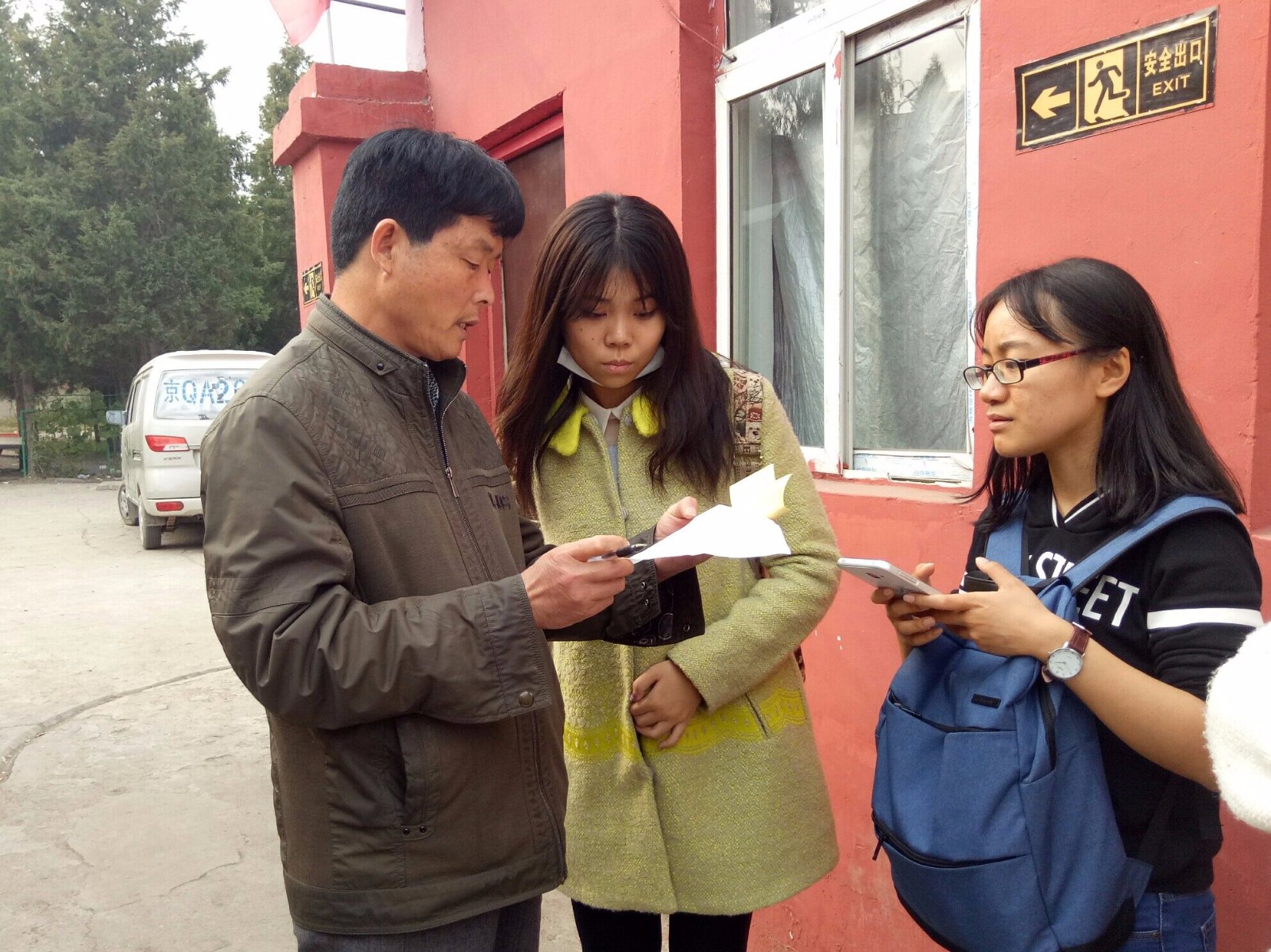 经过了一个多小时的路程,大家终于到达了希望小学。走进公司,志愿者们见到了满怀期待与好奇的孩子们。京豫希望小学的董事长接待了志愿者们,并与负责人确认了志愿辅导的相关信息。而后,志愿者们根据安排分为了10个小组,每个小组负责一位员工。各小组成员跟随员工前往他们的家中,了解员工家庭住址和具体情况。