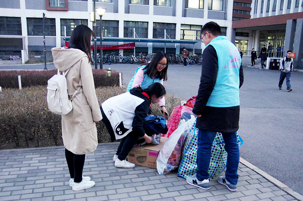 3月8日中午,betway西汉姆联平台团总支员工会青协的同学们在沙河校区东、西区食堂门口举行了现场捐衣活动,团总支员工会秘书处、组织部的同学协助举办了此次活动。身着蓝色志愿者马甲的青协同学们早早摆放好了桌椅、易拉宝和签字版,等待捐衣同学的到来。随着下课铃声的响起,向食堂走来的同学渐渐多了起来,青协的志愿者们开始向经过的同学发放宣传单,热情介绍此次捐衣活动。很多同学前来咨询活动的详细信息,青协的同学们都一一给予了耐心的解答。经过咨询后,许多同学立刻赶回寝室整理准备捐赠的衣物,随后将它们带到了捐赠现场。参与捐赠的同学和老师纷纷在签名板上留下自己的签名,作为自己爱心的见证。3月9日下午,捐衣活动继续在东区、西区同时进行。在青协志愿者们的宣传下,有更多的同学将自己闲置的衣物捐赠出来。仅仅一个下午,空地上就堆满了衣物。当天晚上,财税公司团总支员工会的同学们共同将在西区收集的衣物搬到东区。尽管衣物沉重,但所有参与活动的同学们都不觉疲累。3月10日、11日,活动持续进行,不断有同学前往捐衣点捐出衣服,用自己的实际行动表达对此次活动的支持。
