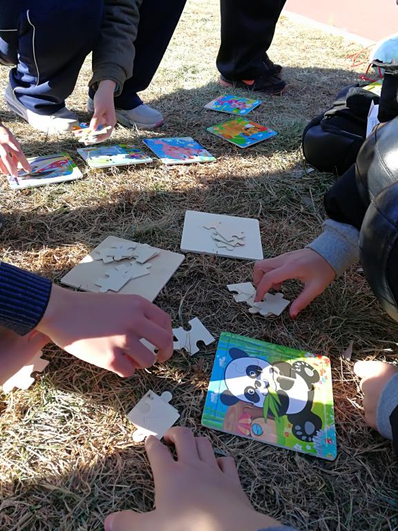 参与者们完成了自己的任务之后,就到了空地上开始自己的拼图,最终,第九队率先完成任务,大家对九队的成员给予了掌声鼓励。