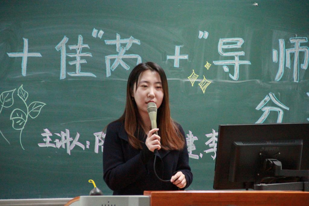 接下来,分享会正式开始。芮+导师陈军宇严谨全面地介绍了芮+计划学习课程,从遴选过程到最终入选,让同学们对芮+计划有了较全面的认识。她还给同学们介绍了工作经历,比如团支部基础建设中的团支委选举、三会两制一课,团员交流中的破冰素拓活动,多种宣传手段以及丰富的支部活动。