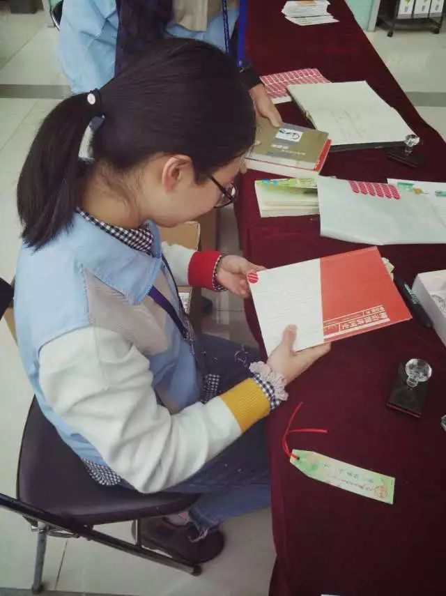 在工作人员的带领下换好了工作服,戴好了志愿者证后,志愿者们便前往了相应的楼层,现场工作人员细心指导,耐心讲解,把工作布置下去。志愿者主要负责读者愿意交换的图书的处理加工。被分为综合类和文史类的图书分别以盖章、盖章并贴标签的方式进行处理,其中,属于曾经被交换出去、已盖章贴签的图书可直接上架,其余则待工作人员检查、核验该图书是否符合上架条件后决定去留。除此之外,志愿者也需帮忙整理图书展览架等。