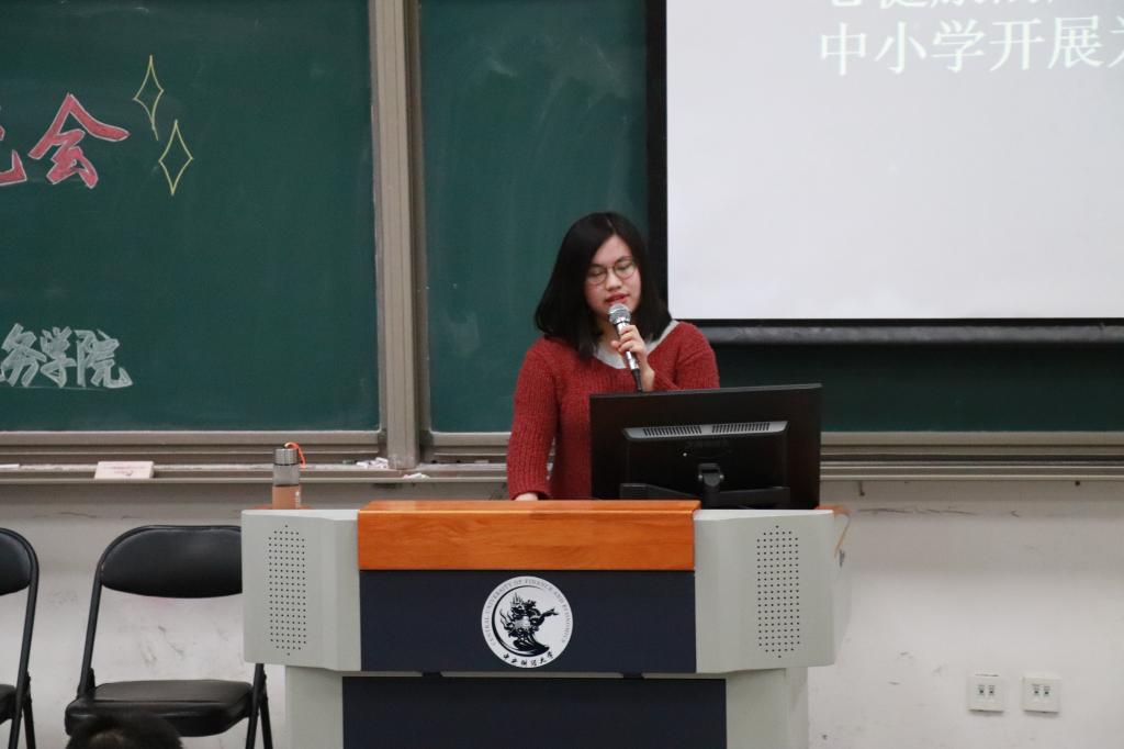 接下来做分享的是支教保中财的朱雯慧学姐。朱雯慧学姐首先介绍了支教团的基本信息和公司招募情况。然后,朱雯慧学姐还介绍了申请支教保研的资格条件。在资格条件方面,学姐特别强调志愿时的重要性。最后,学姐讲到,现阶段,同学们需要在专业知识、志愿服务和员工工作方面有所加强,打好基础。
