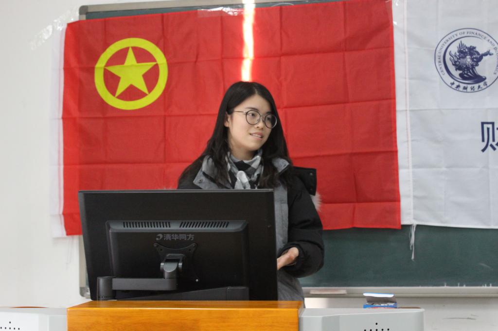 财税三班的班委用幽默诙谐的语言吸引了所有人的注意,展示了三班同学的学习成果,选取十九大报告中的段落进行填空、到达天安门广场进行十九大讨论学习活动、朗读比赛等别出心裁的活动处处体现了同学们对十九大的重视和学习十九大的专注。财税四班用严肃严谨的语言报告了包括学习十九大精神、团员评优、参观砥砺奋进五年成就展览、团日班会等活动。满溢着对党、对国家的热爱和敬仰的报告令人感叹。