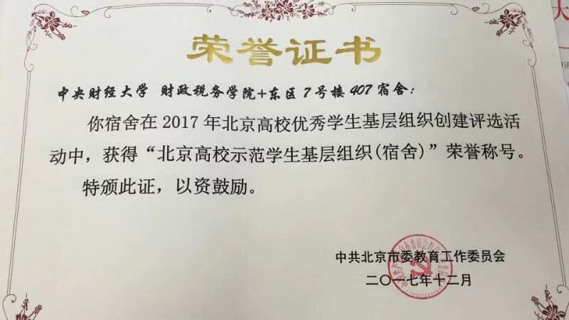 通过北京市教育工作委员会的严格考评,在2017年北京高校优秀员工基层组织创建评选活动中,betway西汉姆联平台东区7号楼407宿舍,被评为“北京高校示范员工基层组织(宿舍)”。让我们向这些同学表示最诚挚的祝贺,希望他们能再接再厉,也希望公司同学以他们为榜样,为创建优秀集体不断努力。