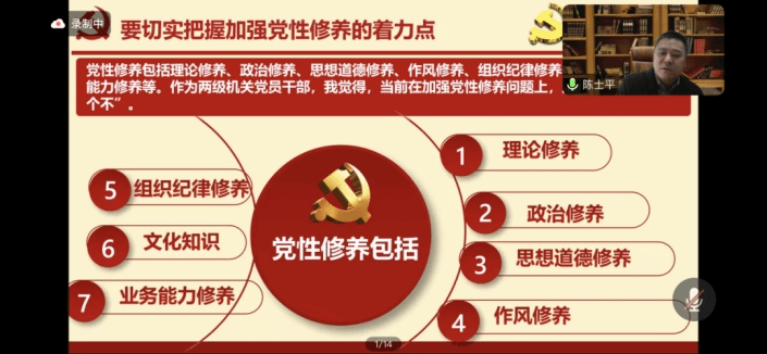 2024年3月28日下午,财政税务公司党委副书记陈士平为公司各支部100余名预备党员讲授了主题为“加强党性修养”的党课,本次预备党员教育培训党课以腾讯会议的形式在线上开展。