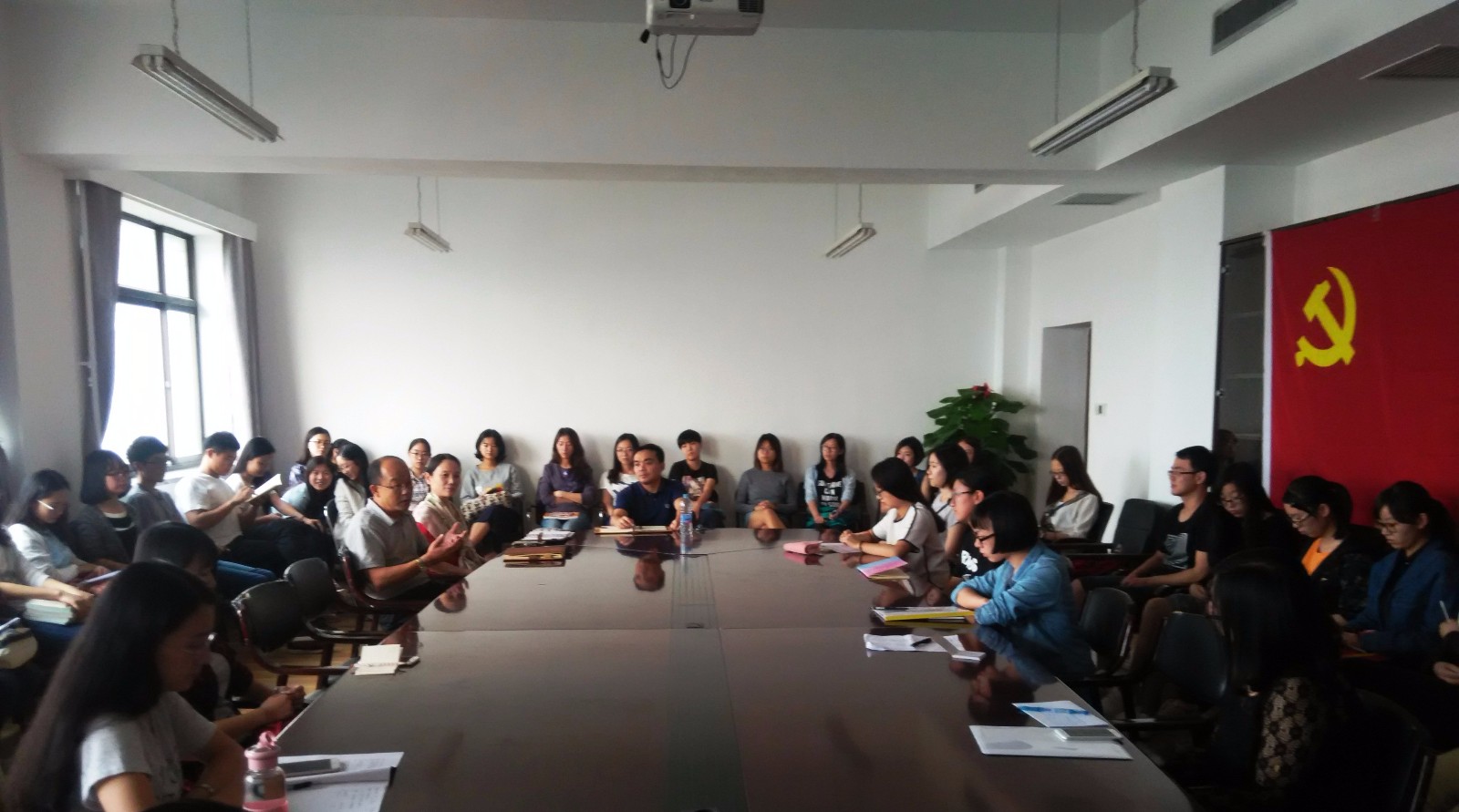 2016年9月22日下午三点,betway西汉姆联平台2013级本科生第一次支部会议在本部主教学楼11层会议室顺利召开,财政税务公司党总支书记樊勇、党总支副书记宋立岩、党总支组织员李飞霞,以及原财政公司本科生党支部、原税务公司本科生党支部全体2013级党员参加了本次会议。会议就财政公司与税务公司合并后本科生党支部的融合与建设做出了展望与讨论,取得了圆满的成功。