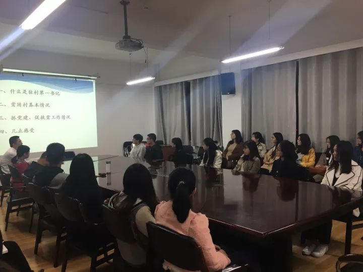王辉员工的分享题目是“坚持党的引领,助推脱贫攻坚——驻村第一书记工作情况交流”,他先简要介绍了一下什么是驻村第一书记,那是他到贫困村助推脱贫攻坚的职务。接着,他用PPT向同学们展示了我国贫困村的基本情况,用一幅幅图片向同学们展示了他前往的贫困村卢氏县南石桥村的面貌,那儿艰苦的生活条件令同学们深受震撼。再后来,王辉员工详细介绍了他在南石桥村抓党建、促扶贫的工作情况,也讲述了他两年扶贫过程中遇到的挑战困难以及取得的各项成就,让同学们体会到政府基层扶贫等工作的不易、艰苦及价值。展示的最后,王辉员工分享了他工作及扶贫以来的两点感受:一是扶贫工作接地气,告诫大家平日要做到知行合一,有责任意识与理想信念;二是引用习近平总书记的话“系好人生的第一粒扣子”,要做到扎实奋斗、独立思辨和百折不挠。