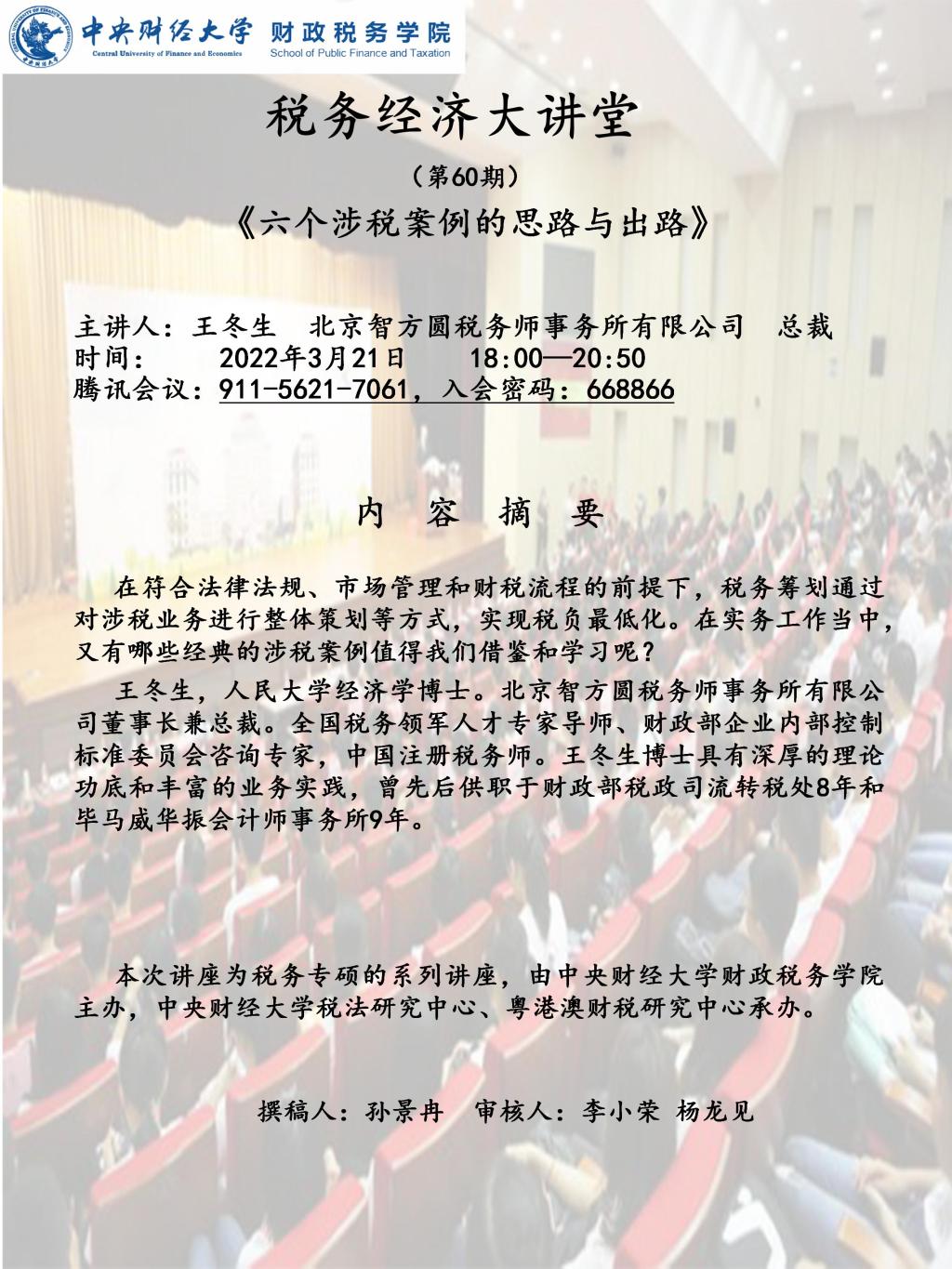 【税务经济大讲堂】《六个涉税案例的思路与出路》