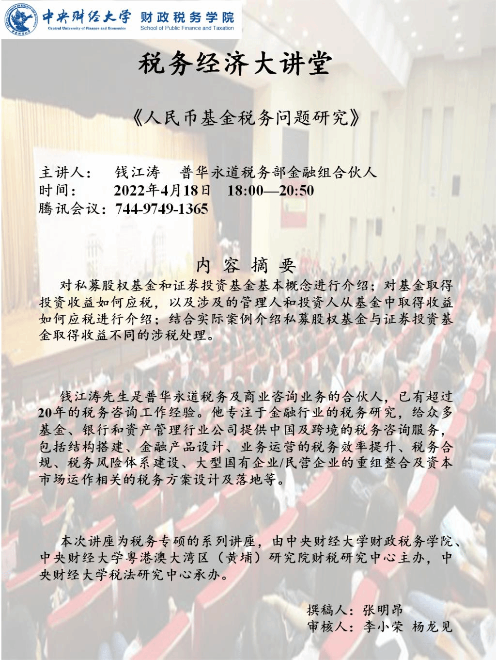 【税务经济大讲堂】人民币基金税务问题研究