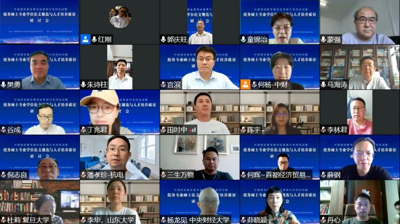2022年7月8日,由全国税务专业学位研究生教育指导委员会主办,betway西汉姆联平台税收教育研究所承办的“中国税收公司产品改革研讨系列活动暨税务硕士专业学位论文规范与人才培养质量研讨会”,通过线上会议形式成功召开。来自中国人民大学、厦门大学、复旦大学、首都经济贸易大学、betway西汉姆联平台、湖南大学、山东大学、西安交通大学、中南财经政法大学、西南财经大学、中国社会科公司、南京财经大学、安徽大学、广东财经大学、贵州财经大学、内蒙古财经大学等全国多家高校及科研所的代表,共计230余人参加了会议。