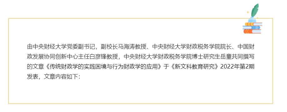 【引用格式】马海涛、白彦锋、岳童:《传统财政学的实践困境与行为财政学的应用》,《新文科教育研究》2022年第2期,第102-116页。