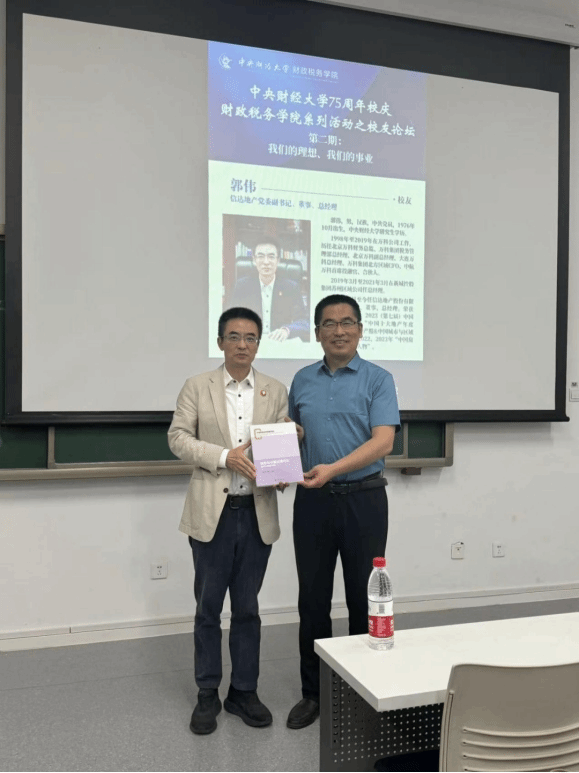 最后,肖鹏书记将公司新出版的、两位主编共同签名的中国财税研究报告(2023)《财政与中国式现代化:理论与制度创新》赠予郭伟员工,并欢迎郭伟员工回校参加公司11月份举行的建校75周年系列庆祝活动。